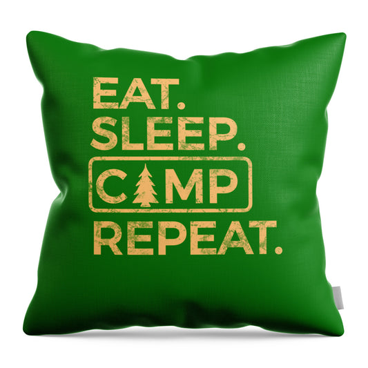Eat Sleep Camp Repeat - Throw Pillow