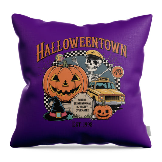 Halloween Town Taxi Stop - Throw Pillow