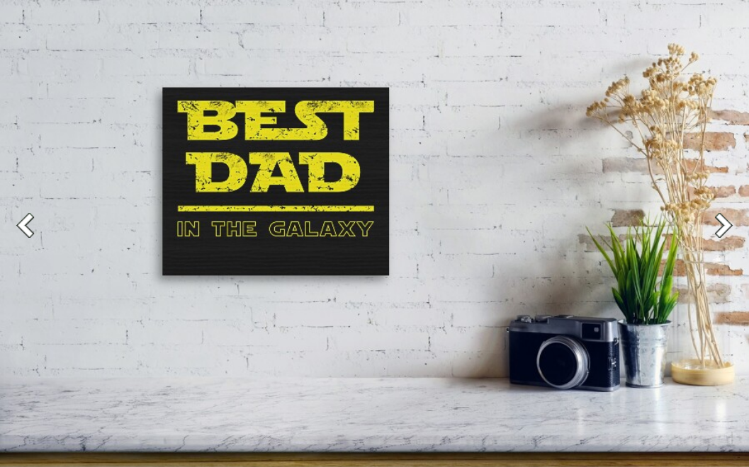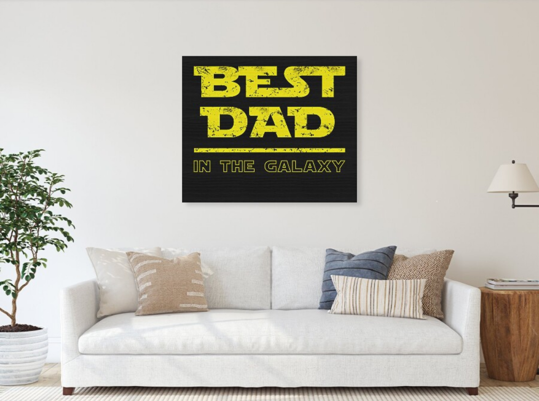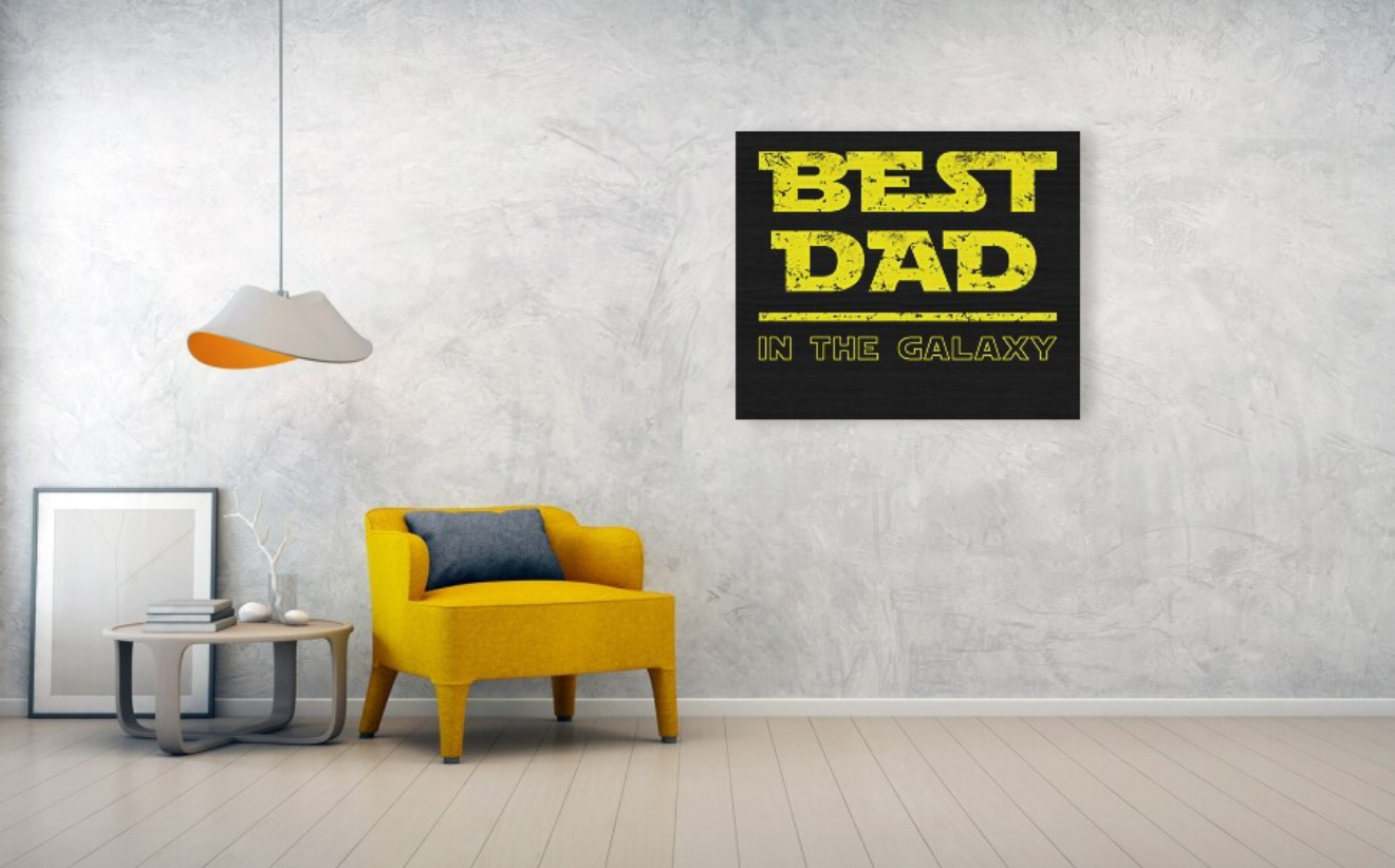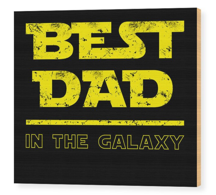 Best Dad in the Galaxy wood print by Scar Design. Bring your artwork to life with the texture and added depth of a wood print. Your image gets printed directly onto a sheet of 3/4" thick maple wood. There are D-clips on the back of the print for mounting it to your wall using mounting hooks and nails (included).