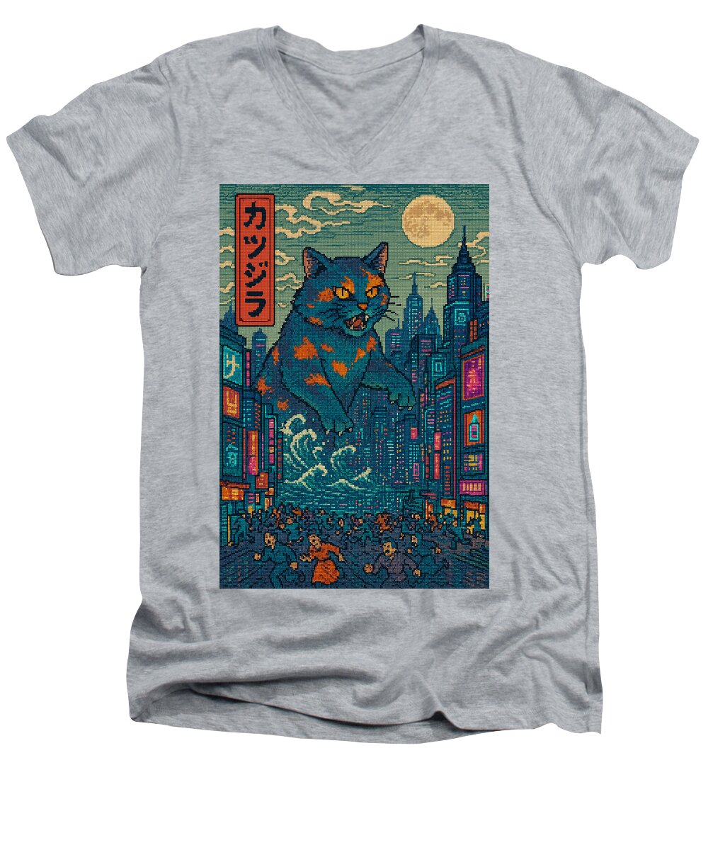 Catzilla a Purr-fectly Hilarious Monster - Men's V-Neck T-Shirt