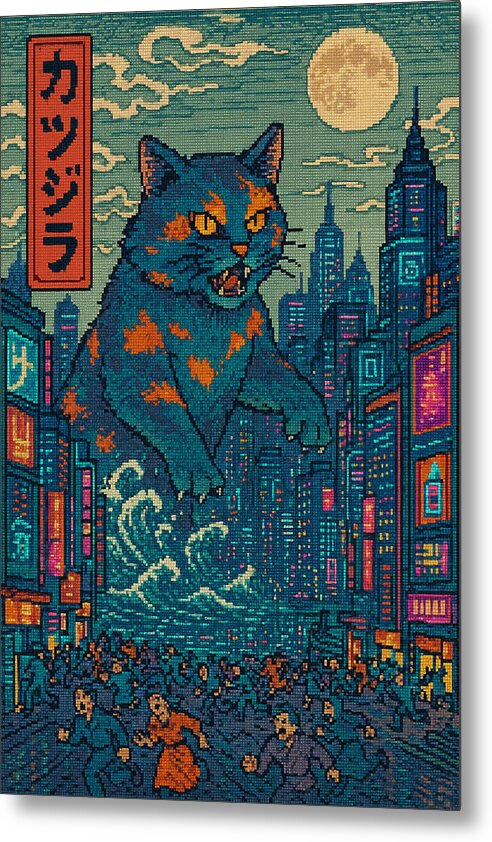 Catzilla a Purr-fectly Hilarious Monster - Metal Print