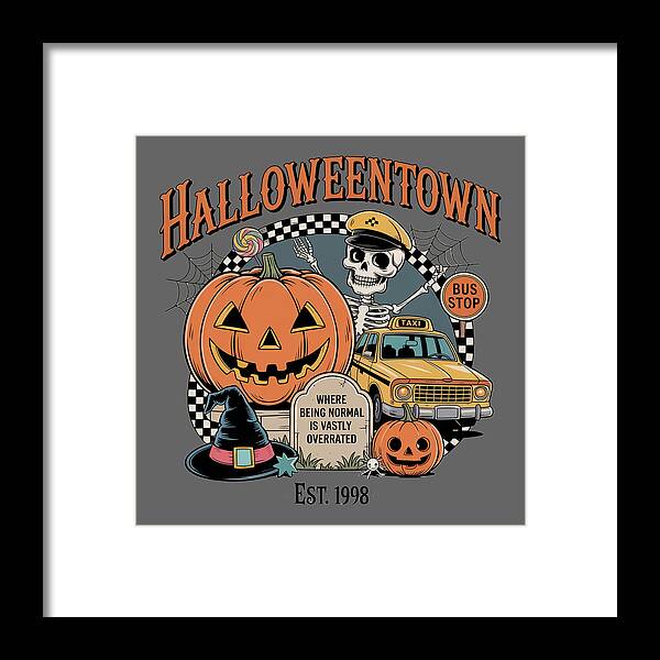 Bring spooky fun to your space with the Halloween Town Taxi Stop framed print. This playful artwork captures a quirky, eerie scene perfect for adding Halloween charm all year round. Its vibrant colors and detailed design make it a delightful conversation starter for any room. Easy to hang and ready to impress, this print is ideal for fans of festive, whimsical décor.