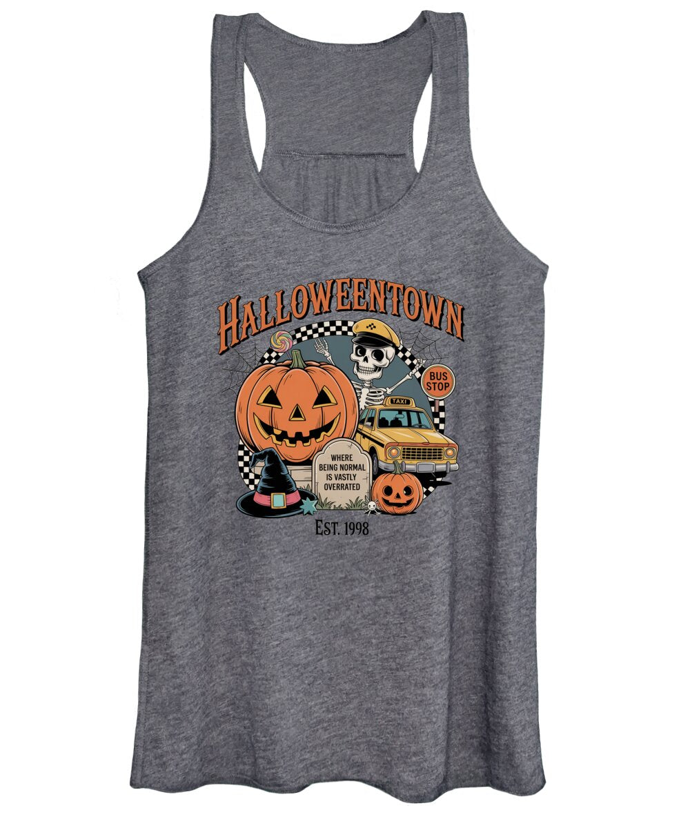 Elevate your Halloween vibe with the Halloween Town Taxi Stop Women's Tank Top. Crafted for fearless style, this bold tank features a striking graphic that captures the eerie charm of Halloween Town. Perfect for those who dare to stand out, its comfortable fit makes it ideal for day-to-night wear during the spooky season and beyond. Make every outing a statement with this must-have tank that blends edge and comfort effortlessly.