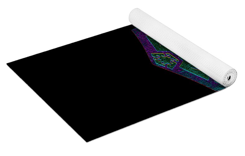 Our premium yoga mats are 24" wide x 72" tall x 0.25" thick and made from natural rubber with a blended microfiber top surface. The top of the mat has the image printed on it, and the back is solid black with textured dimples for better floor grip.