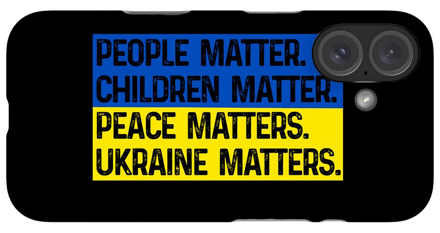 Ukraine Matters Ukrainian Flag iPhone case by Scar Design. Protect your iPhone with an impact-resistant, slim-profile, hard-shell case. The image is printed directly onto the case and wrapped around the edges for a beautiful presentation. Simply snap the case onto your iPhone for instant protection and direct access to all of the phone's features!